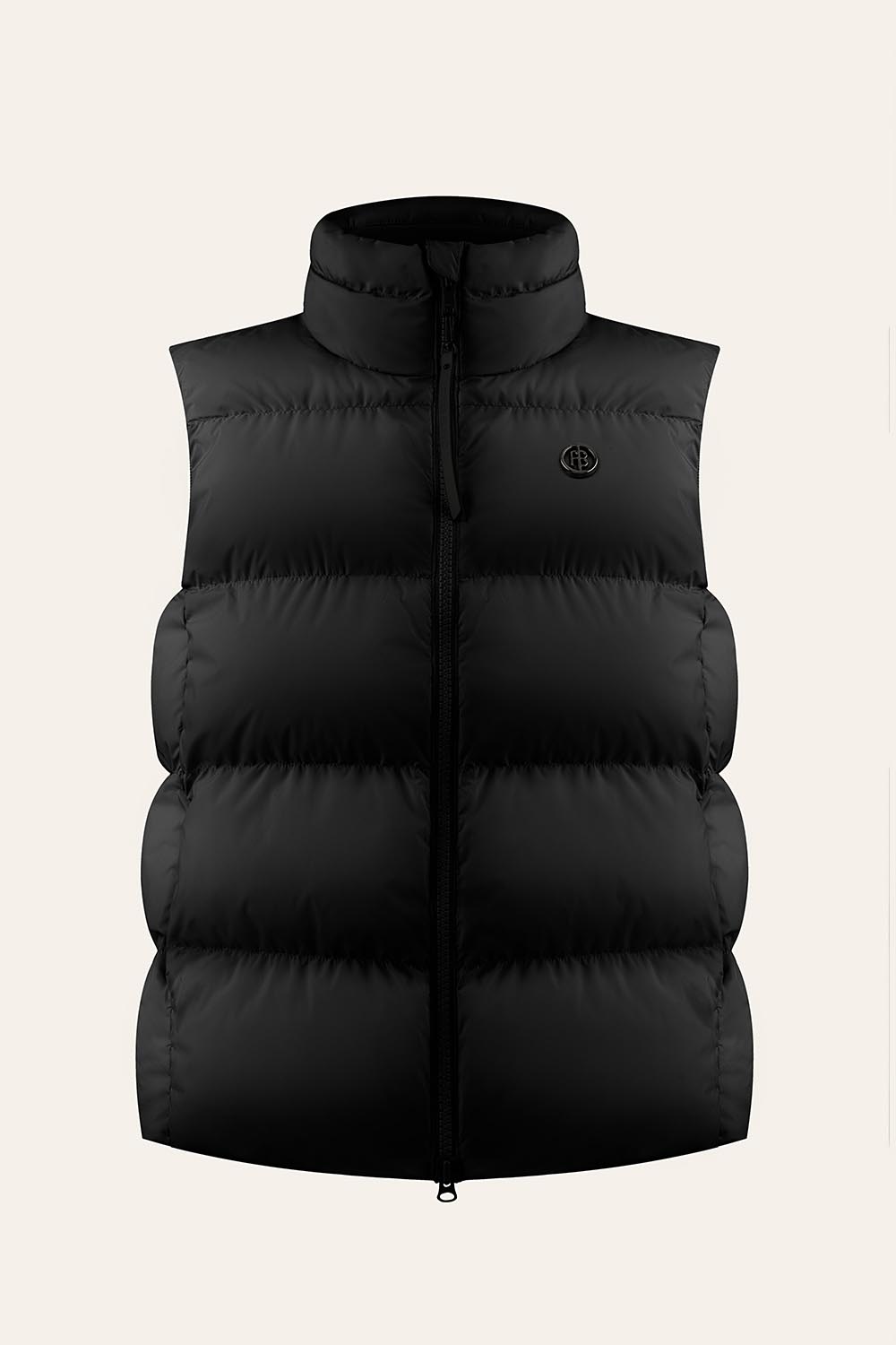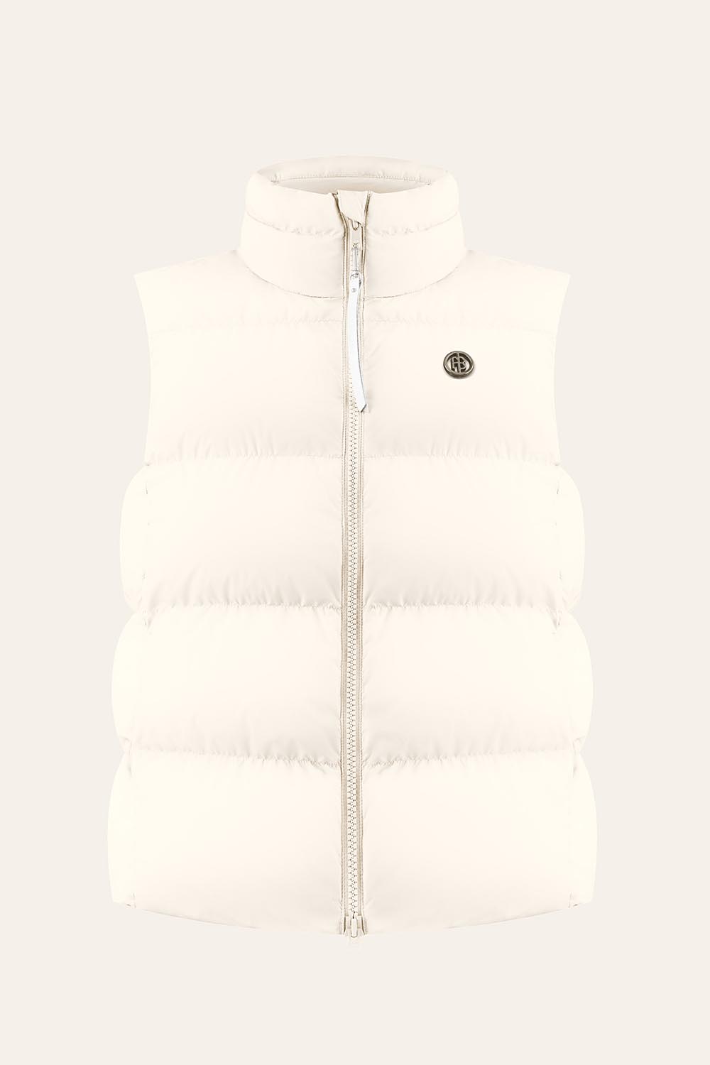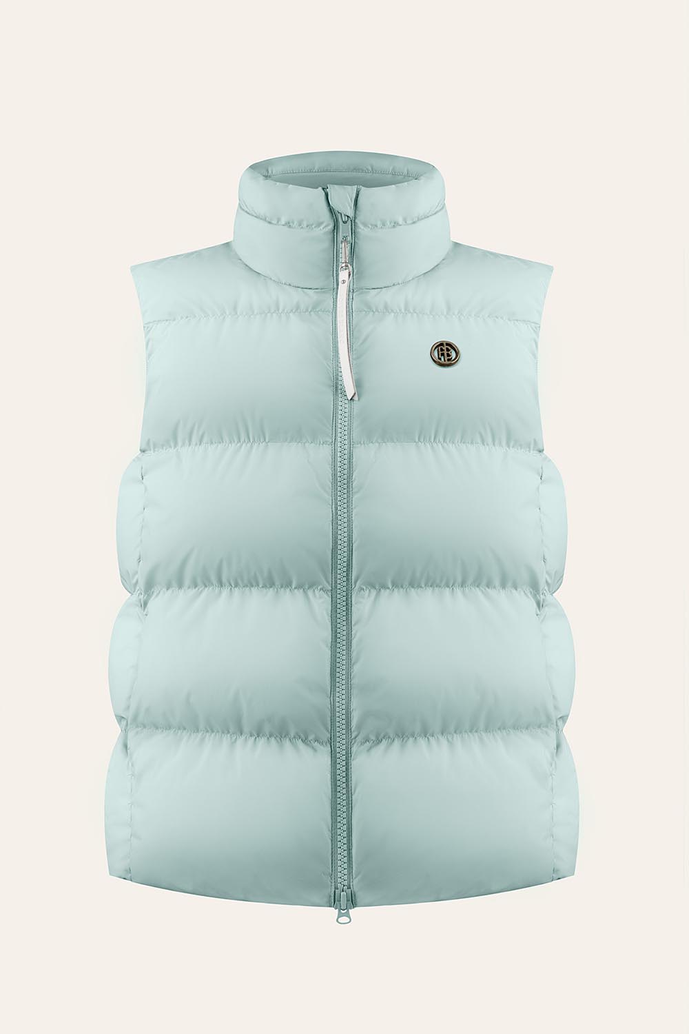 The Camila sleeveless down jacket is designed in an iridescent, matte or printed fabric.