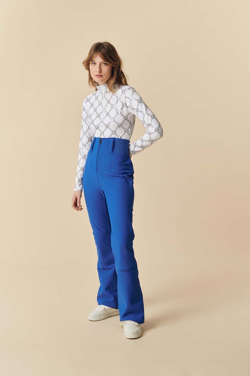 The Glory ski pants feature a high fitted waist with a wide elasticated waistband that highlights the figure.