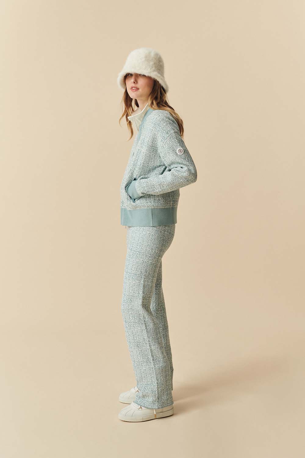 The Alma pants are designed in jacquard knit with a silky feel and can be combined with the Ava jacket.
