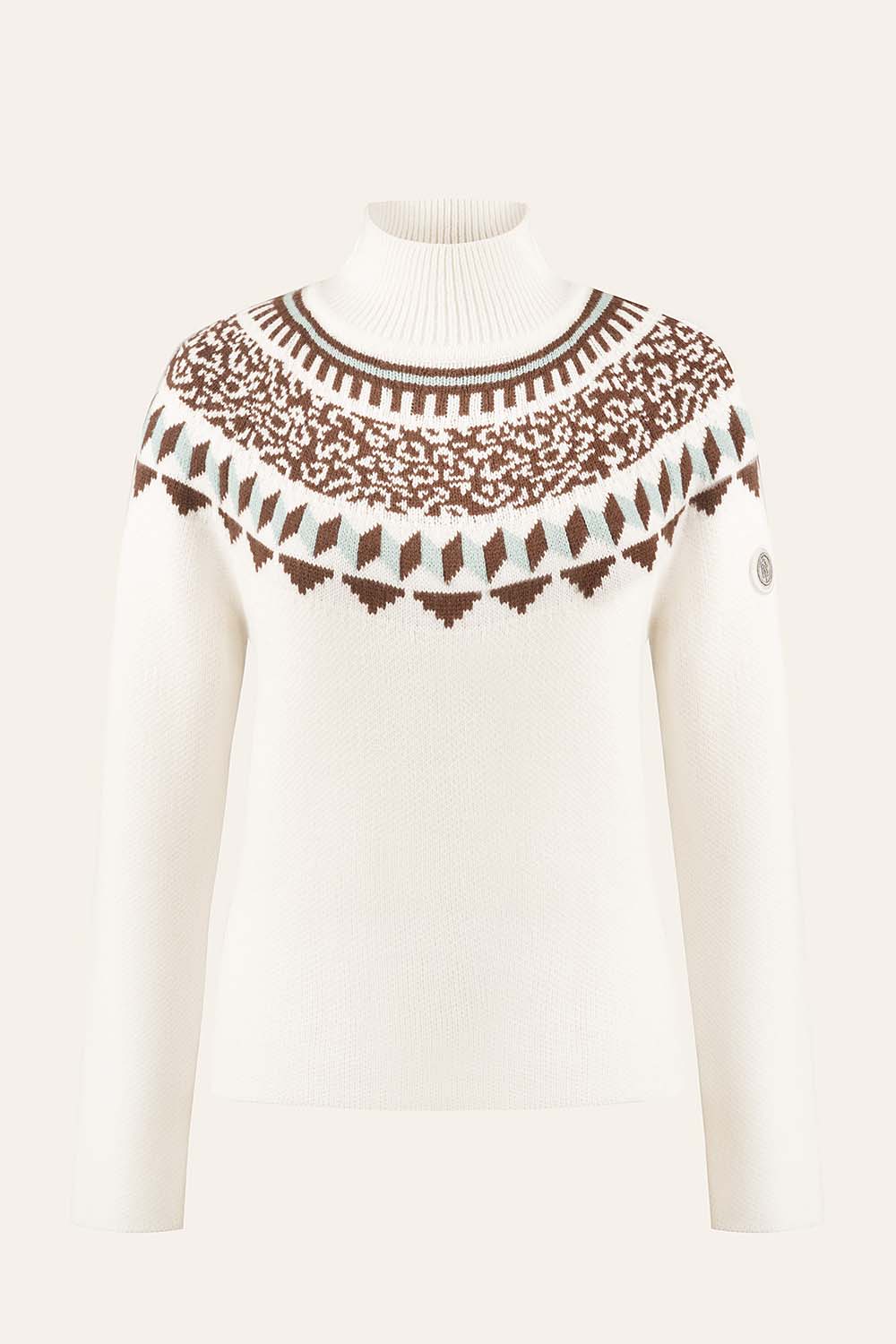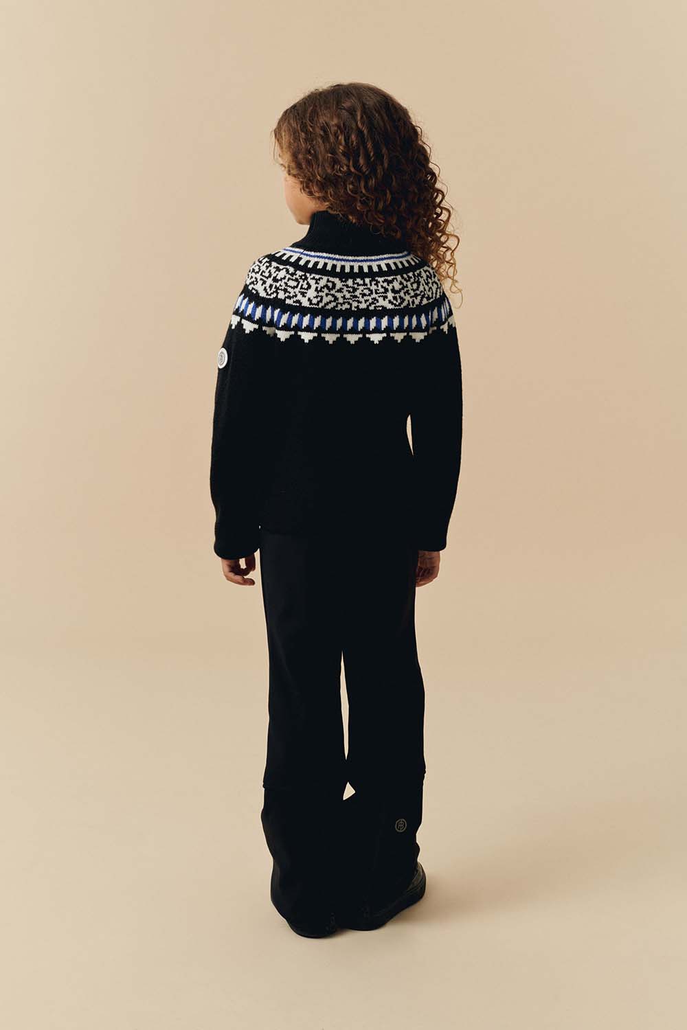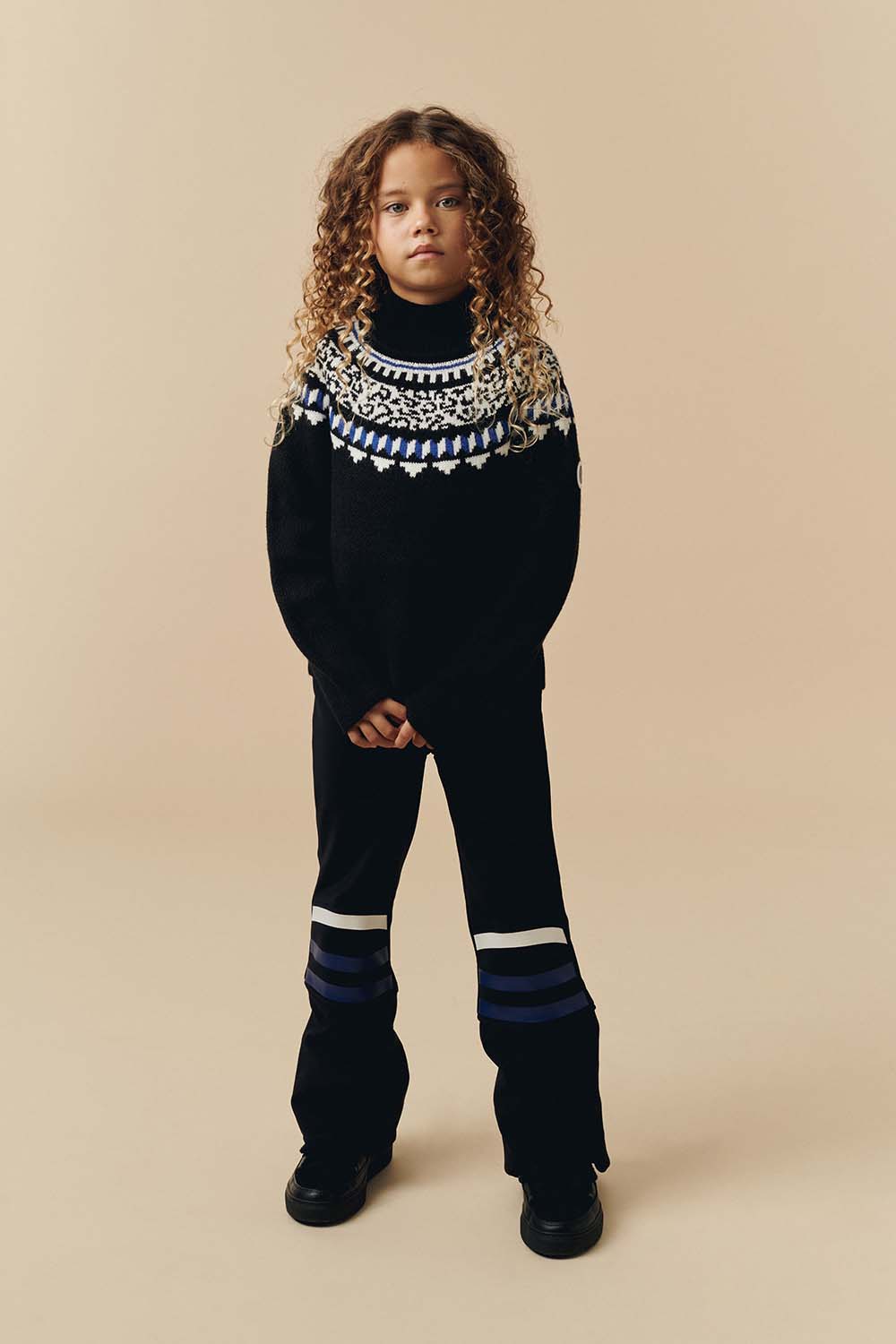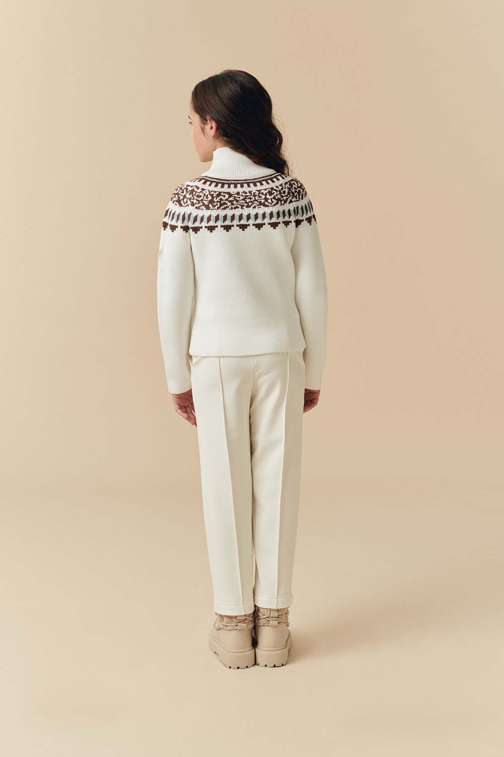 Its modern, wide cut is decorated with geometric jacquard patterns