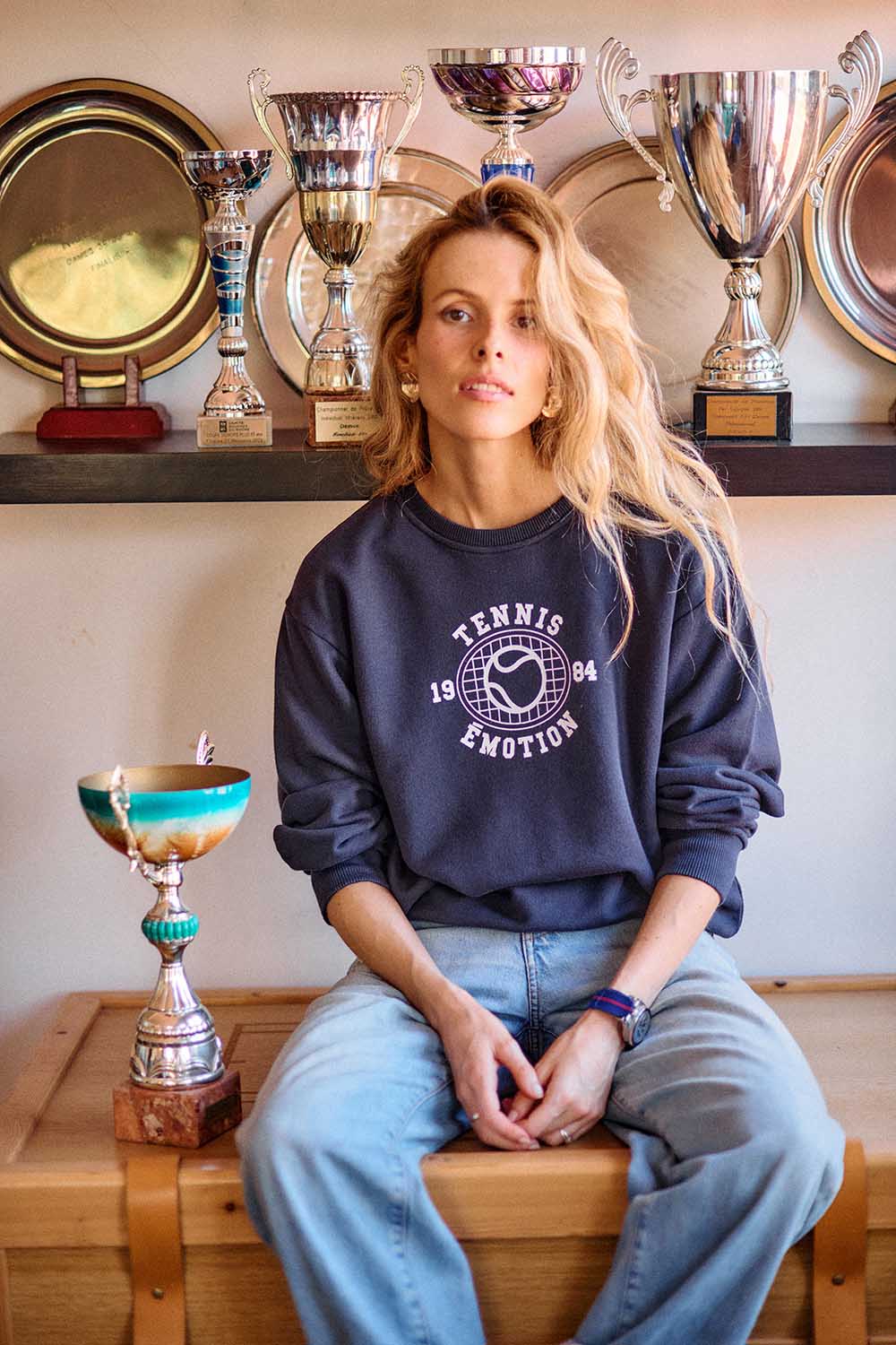 Ultra-trendy straight-cut sweatshirt thanks to a vintage tennis print on the front