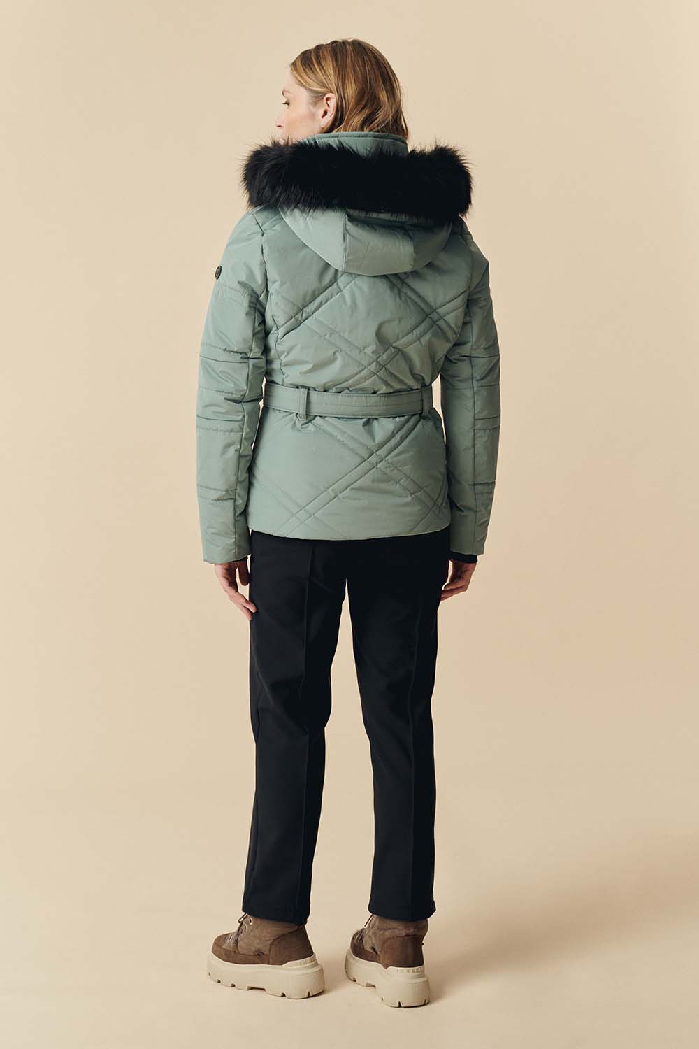 Its removable hood, its fake fur band and its snow skirt offer great versatility, both in the mountains and in the city.