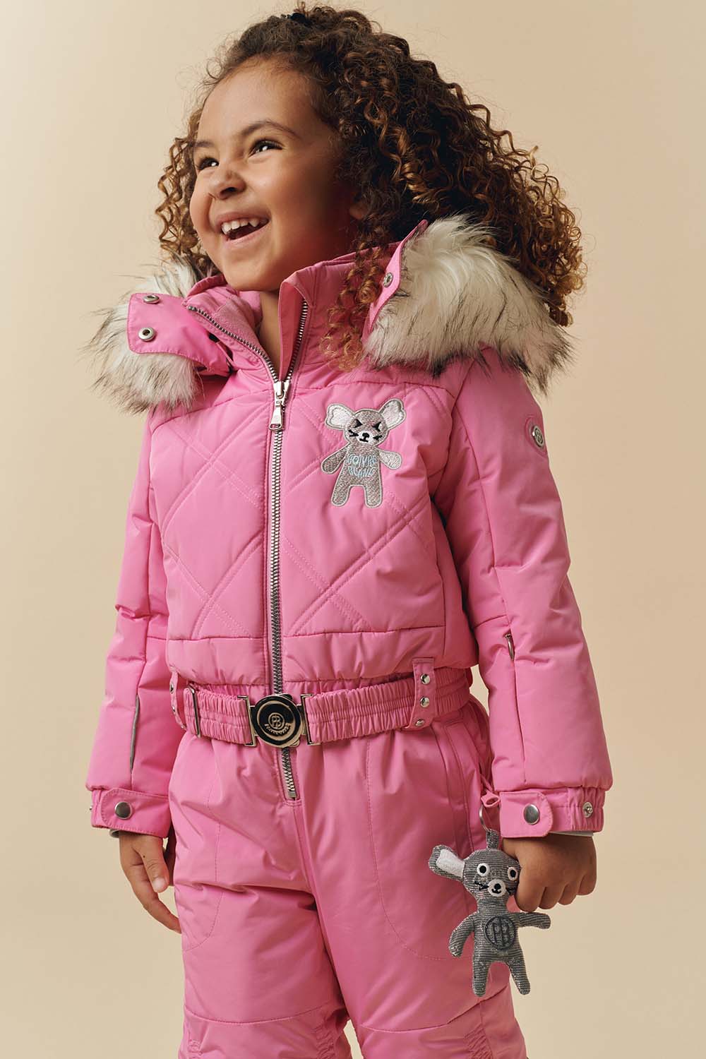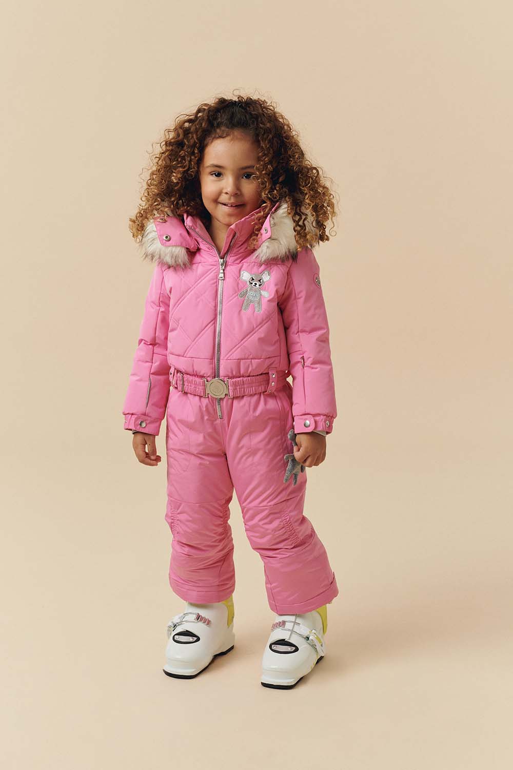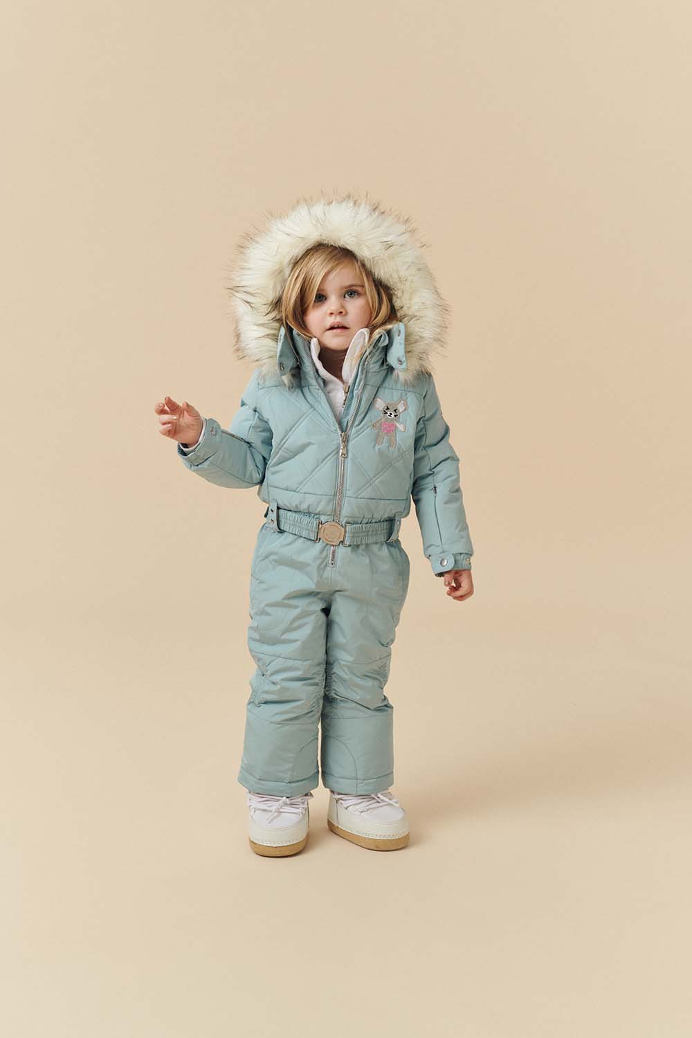 La combinaison de ski Joyce existe en versions tissu irisé ou imprimé.