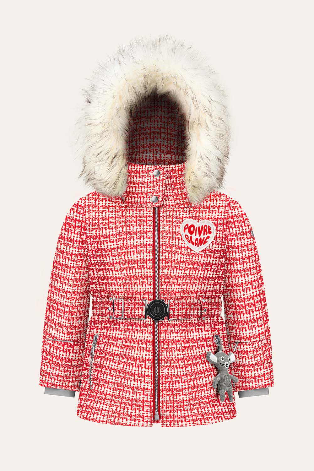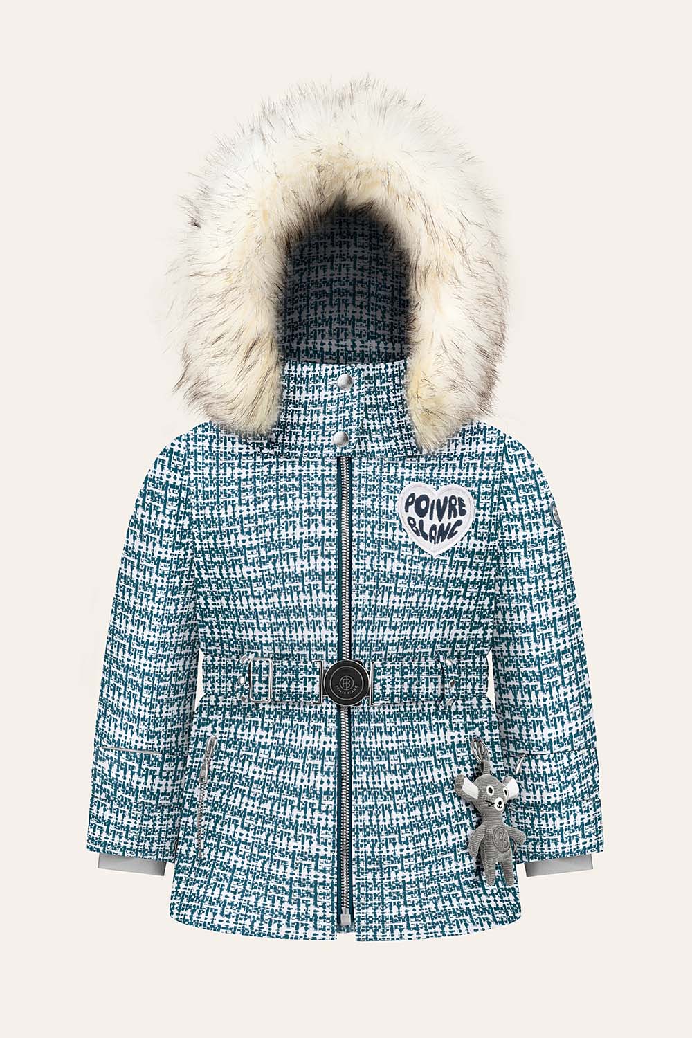 Sa capuche amovible, sa bande en fausse fourrure et sa jupe pare-neige offrent une grande polyvalence, aussi bien à la montagne qu’à la ville.