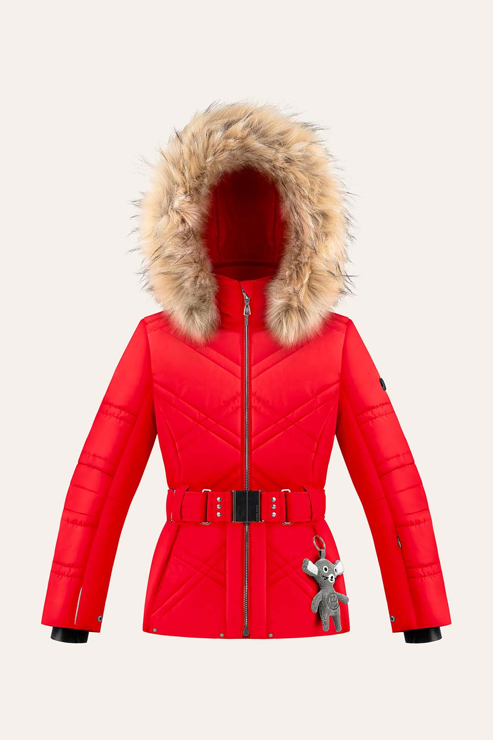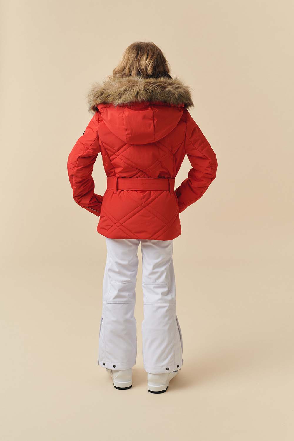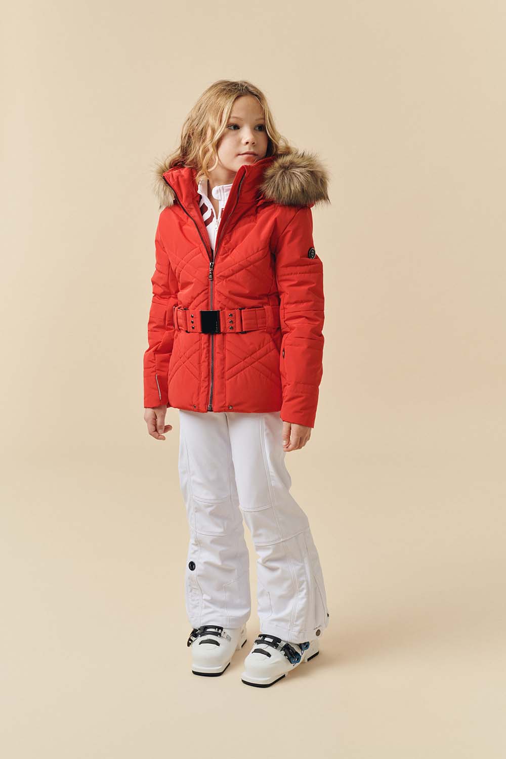 Sa capuche amovible, sa bande en fausse fourrure et sa jupe pare-neige offrent une grande polyvalence, aussi bien à la montagne qu’à la ville.