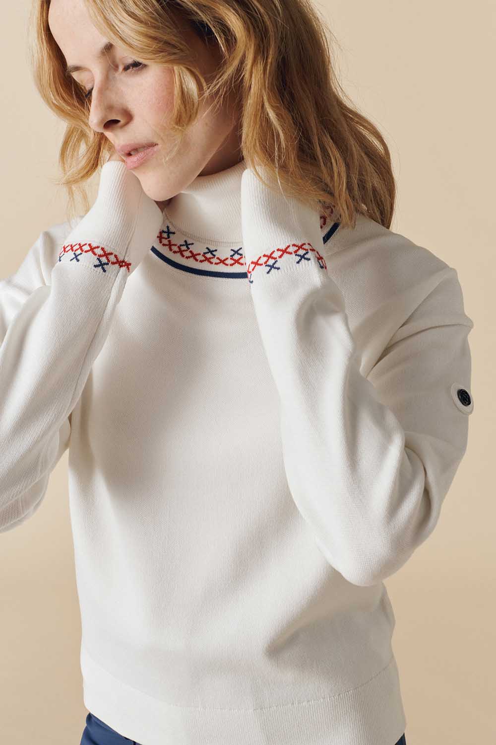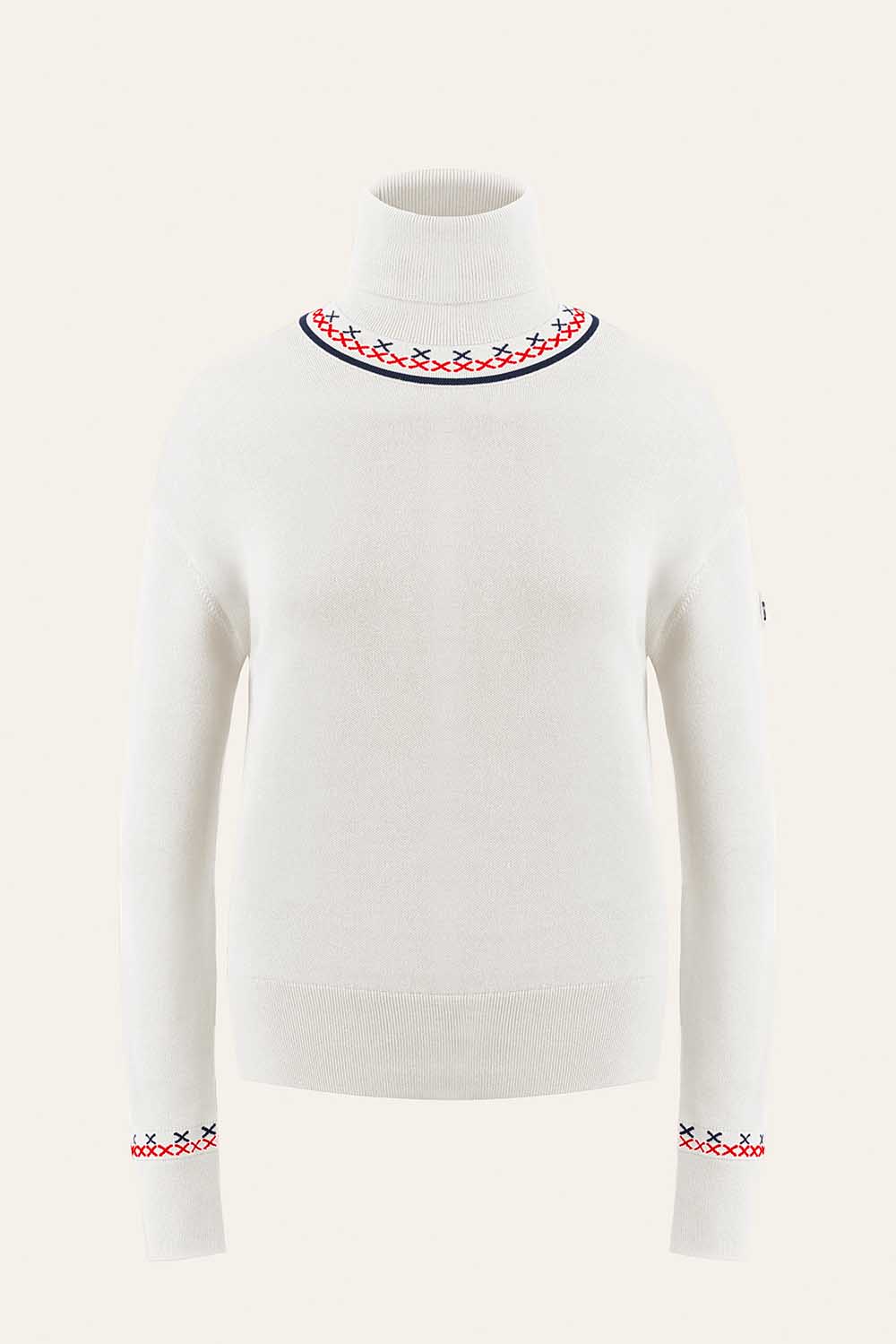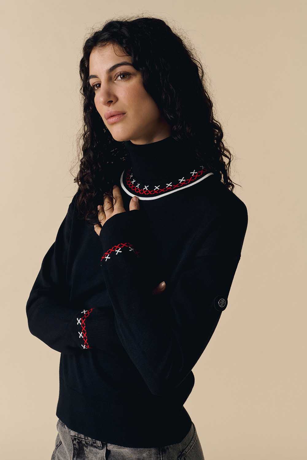 Alba knit pullover features a short, trendy cut and a cozy turtleneck for added warmth. Combining trend-forward design with practical warmth, it’s ideal for any winter occasion.