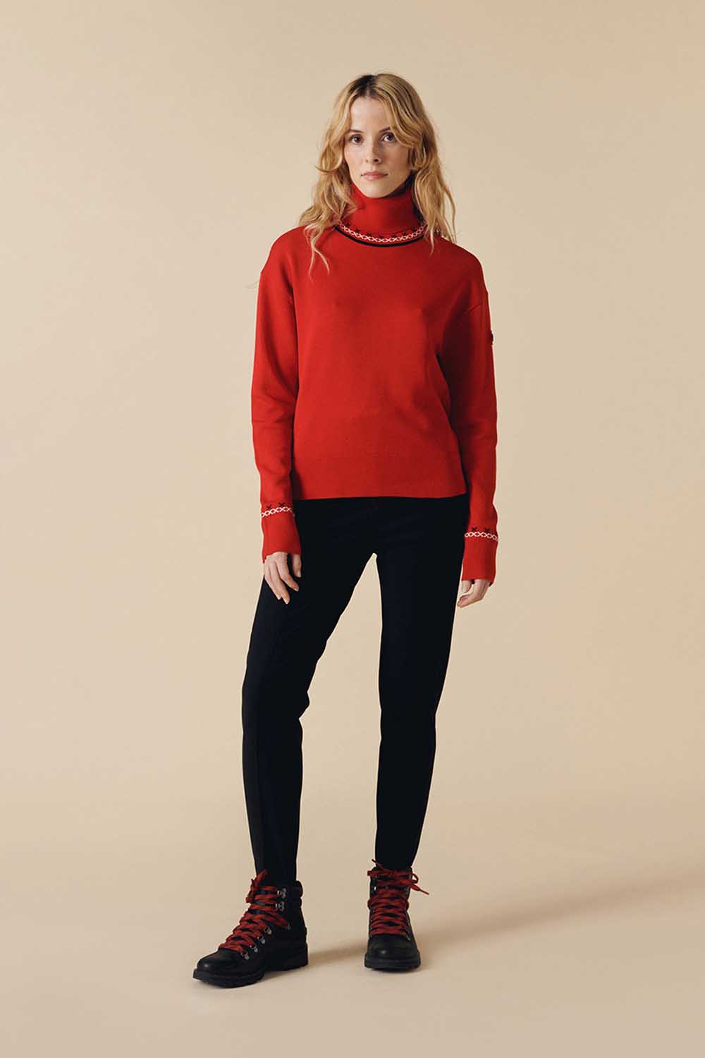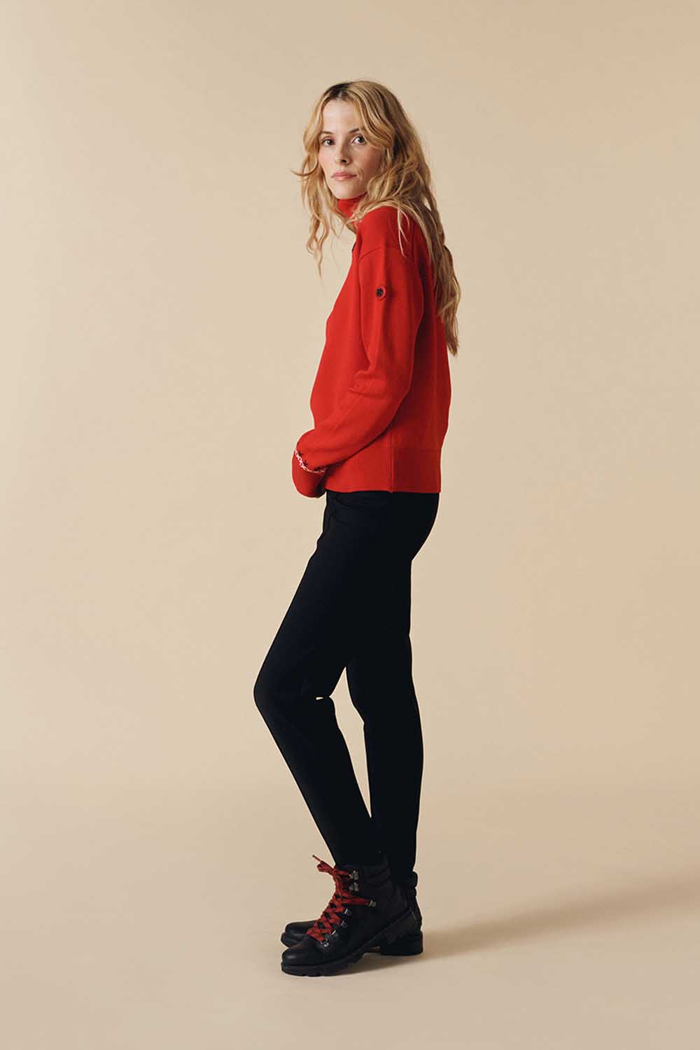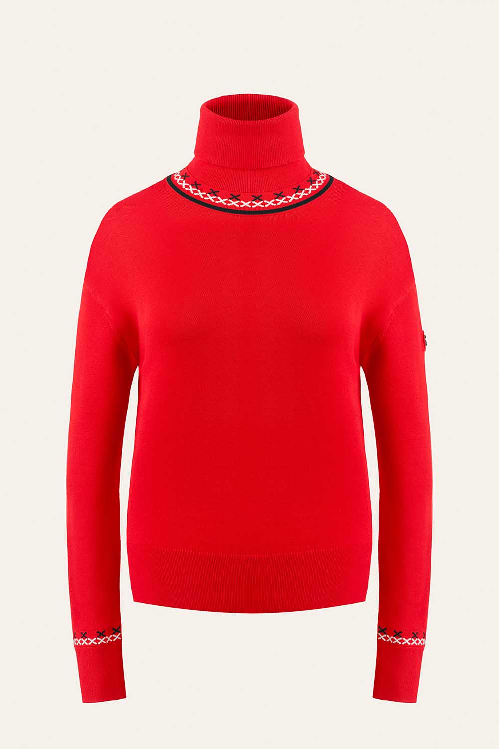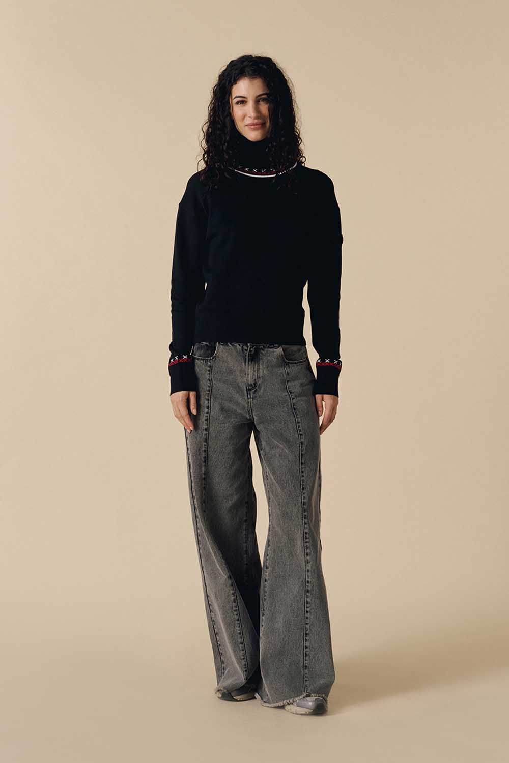 Alba knit pullover features a short, trendy cut and a cozy turtleneck for added warmth. Combining trend-forward design with practical warmth, it’s ideal for any winter occasion.