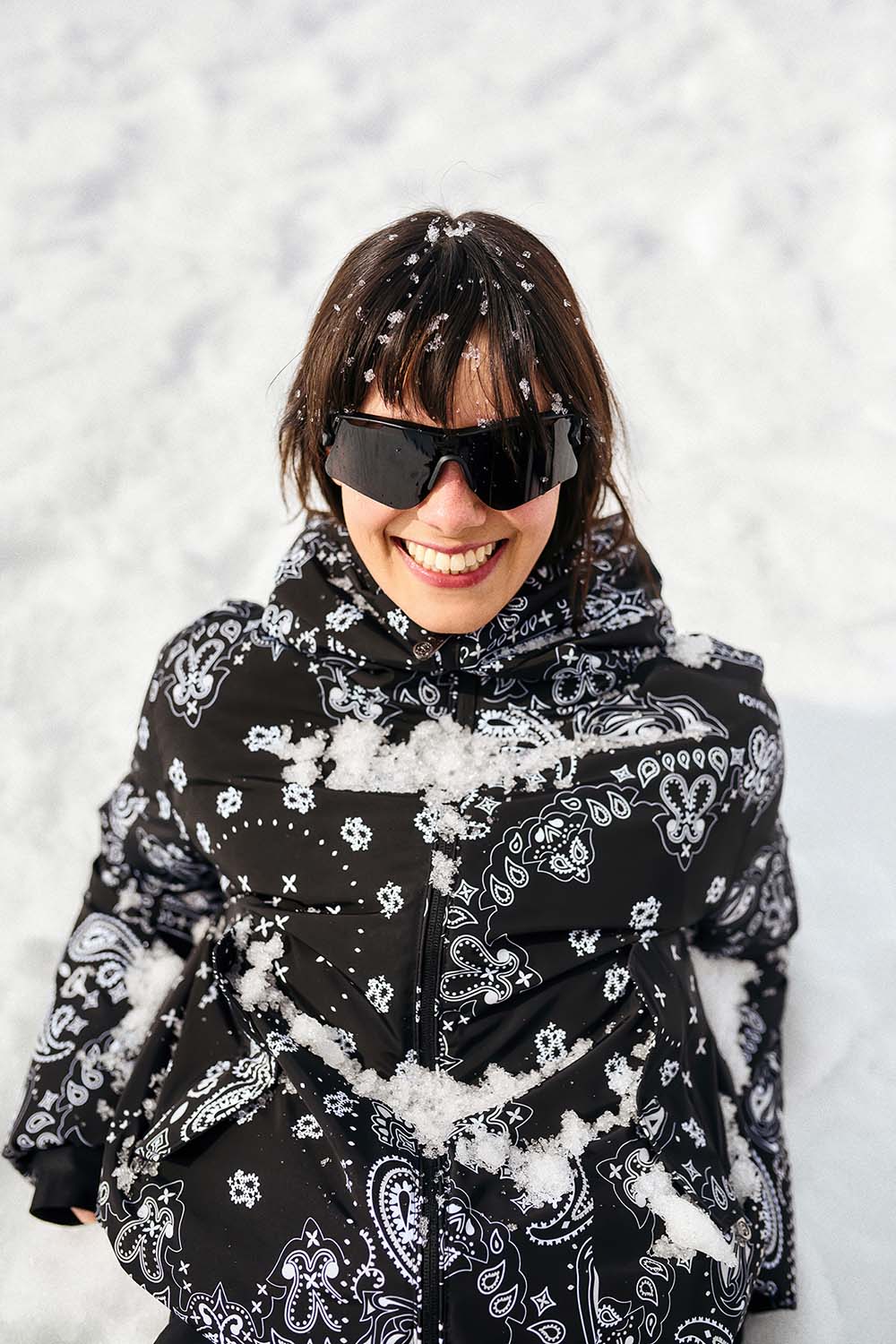 Designed with a protective high collar and fluid movement in mind, it captures light beautifully while keeping you stylish and comfortable on the slopes.