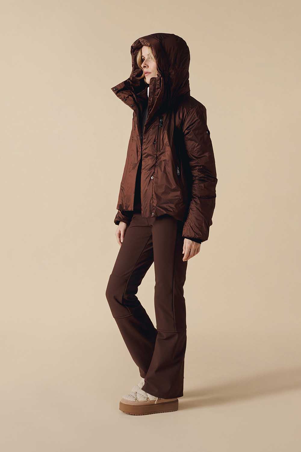 Avec la veste mi-longue Clara, le style rencontre la sophistication. Son tissu aux reflets changeants attire tous les regards, tandis que ses détails bien pensés offrent confort et praticité pour des journées de ski tout en liberté.