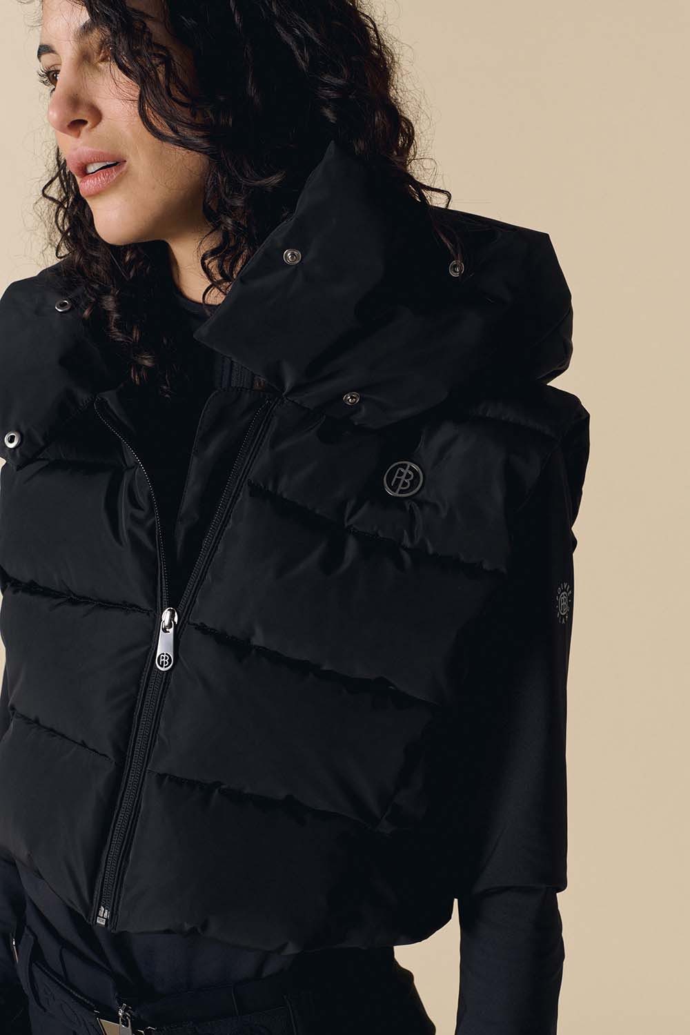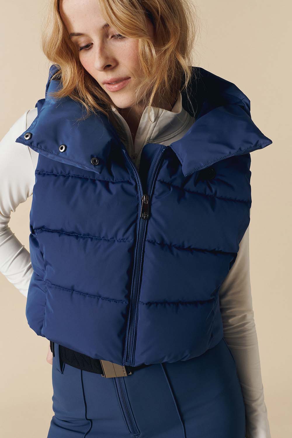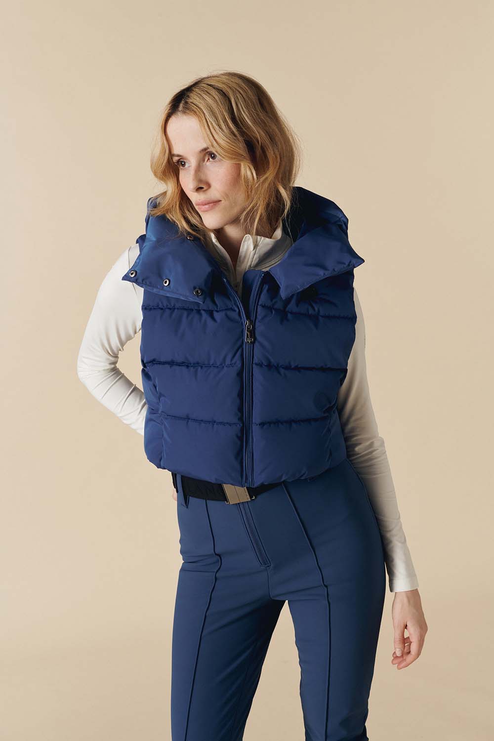 Pensée pour la skieuse moderne, la doudoune courte sans manches Cindy vous offre un combo idéal entre élégance et technicité pour une silhouette sport-chic.