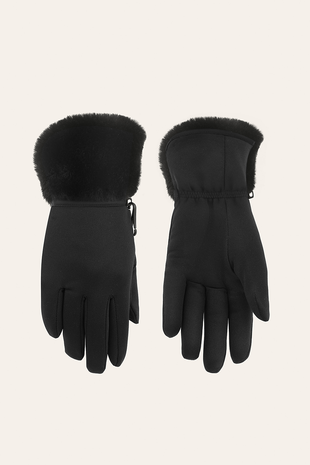 Chaleur et douceur réunies dans une paire de gants en fausse fourrure pensée pour l’hiver.